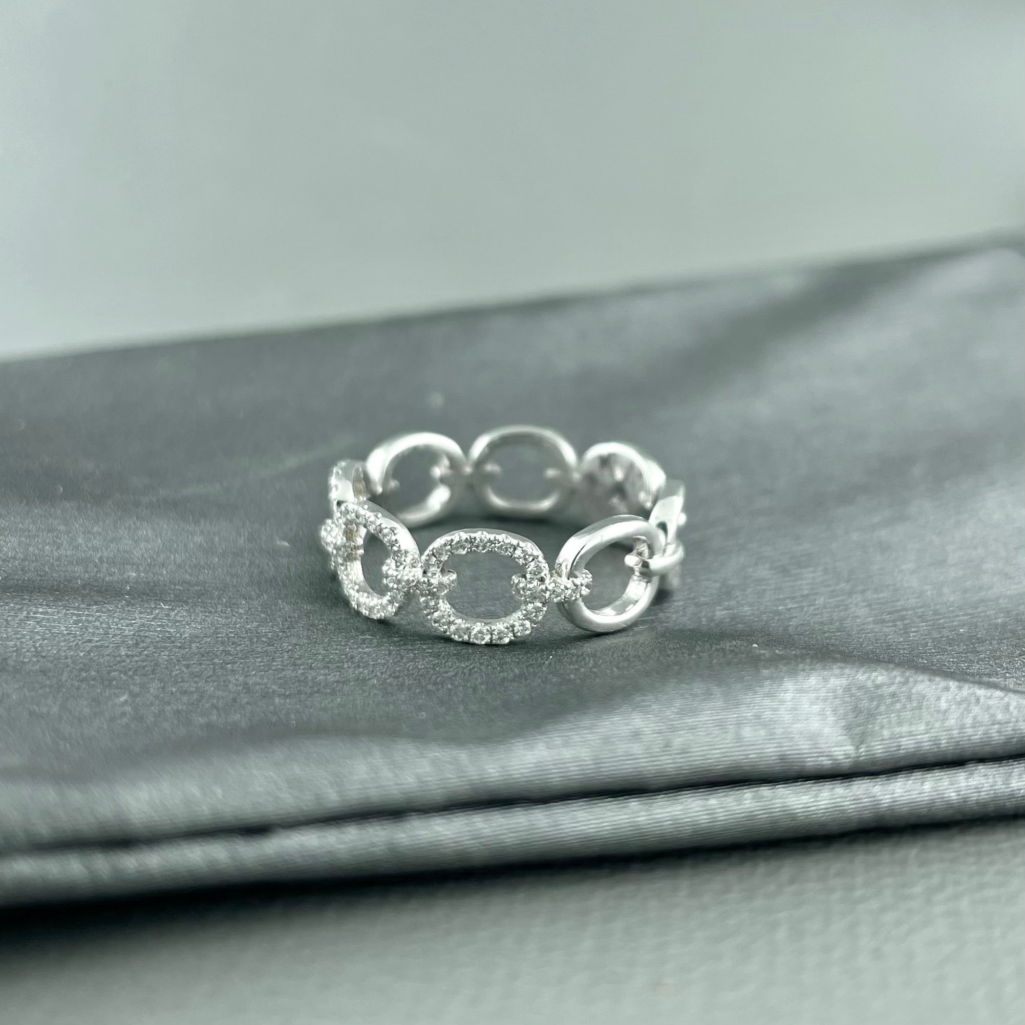 14k White Gold Diamond Chain Style Ring Diamonds .23 Carat Total