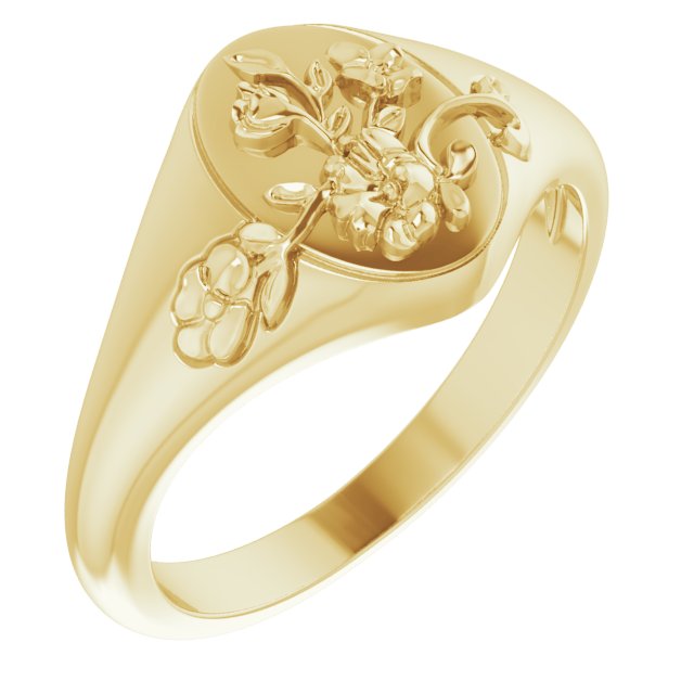14K Yellow 10.8 mm Oval Floral Signet Ring